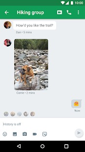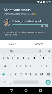 Les conversations de groupe n’ont jamais été aussi conviviales. Envoyez des photos ou des emoji, soyez informé dès que vos contacts sont connectés au Hangout et envoyez à tout moment des messages à vos amis, même lorsqu’ils ne sont pas connectés.