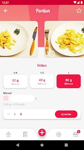 Nombre d’aliments représentés : 1934. - Possibilité d’enregistrer ses propres aliments, avec ou sans photos.