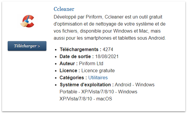 Bref, CCleaner est une application complète avec une série d’outils supplémentaires qui faciliteront l’utilisation de votre téléphone mobile et amélioreront ses performances. Installez maintenant pour protéger votre téléphone bien-aimé.