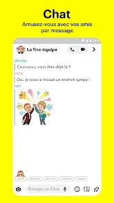 Application à fonctions très larges. Parler, envoyer des photos, prendre des photos avec filtres, voir la position de tes amis, voir l’emplacement d’ou on a pris nos photos et beaucoup d’autres. Le seul point négatif, c’est qu’on ne peut pas voir si la personne est actif/ve ou pas. C’est mon seul point négatif sur cette app.